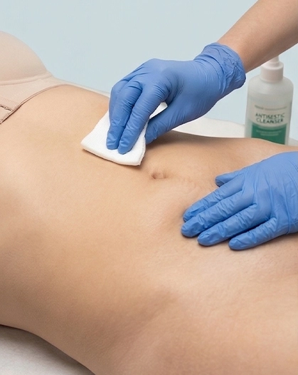 Ensure your skin and incision area are clean and completely dry. If you are using post-surgical pads or thin gauze as directed by your doctor, place them first.